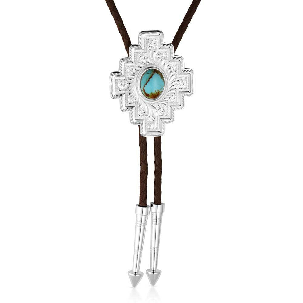 Style #BT6064-Four Winds Bolo Tie-Montana Silversmiths Experience true Southwestern style with the Four Winds Bolo Tie. This bolo tie features a unique design with filigree, Southwestern geometric patterns, and silver...